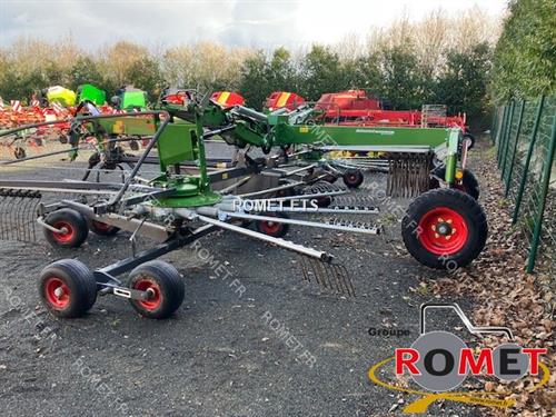 Largeur de travail : 8,80 à 10,65 m Double-rotor Andainage central Essieu tandem suiveur Réglage largeur hydraulique Réglage hauteur mécanique Repliage hydraulique Tête pivotante Bras 2 x 15 Sélecteur hydraulique