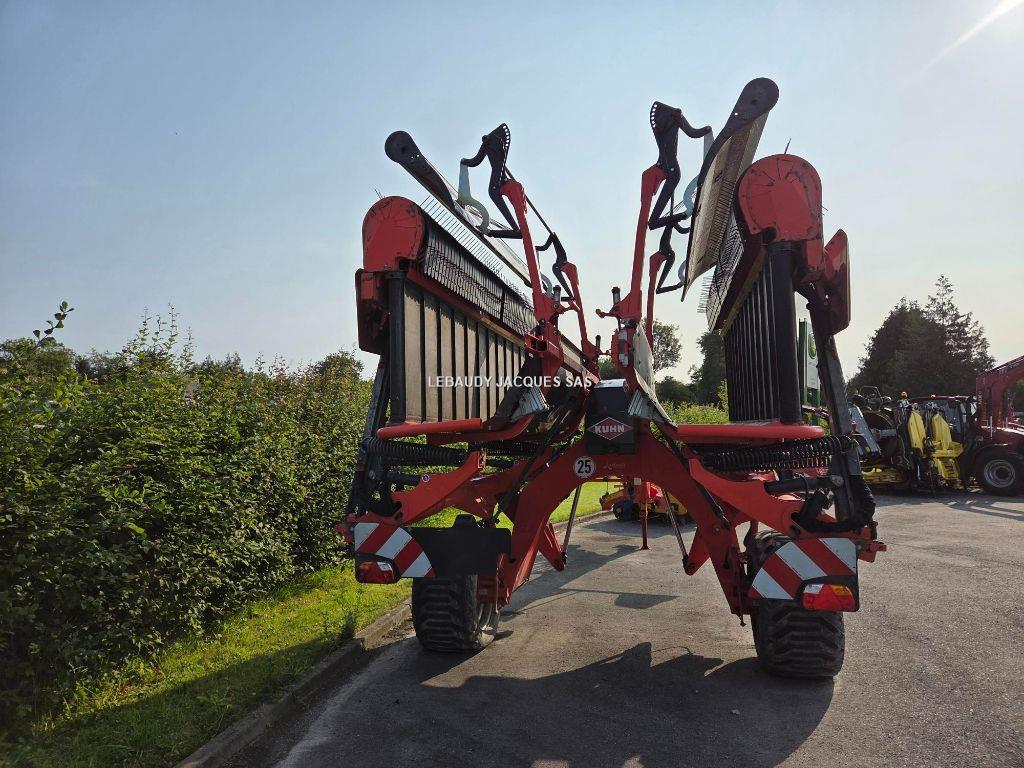Marque : KUHN Modèle : MERGE MAXX 950 Année : 2019 Largeur travail (m) : 9.50 Mise en andain : CENTRAL ET LATERAL Marque pneus : BKT Dimension pneumatiques : 500-45-22.5 Usure pneus : 60%
