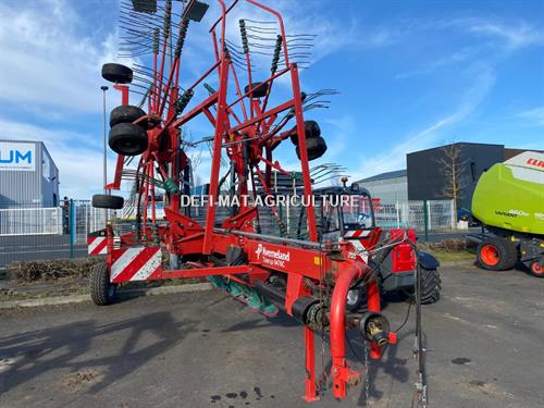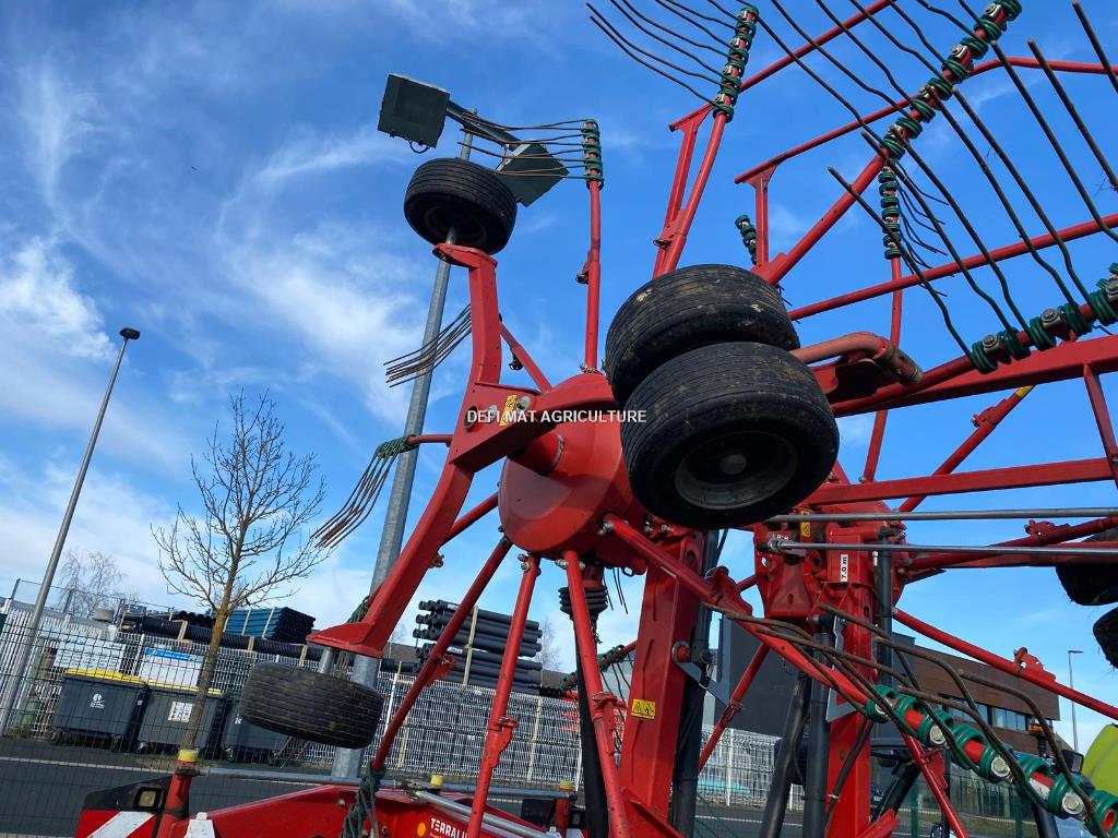 andain central. réglage hydraulique de la largeur de travail. relevage indépendant des rotors. commande électrique. bâche centrale. roue de secours. prix de vente dans l'état départ concession