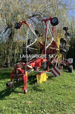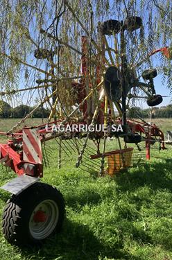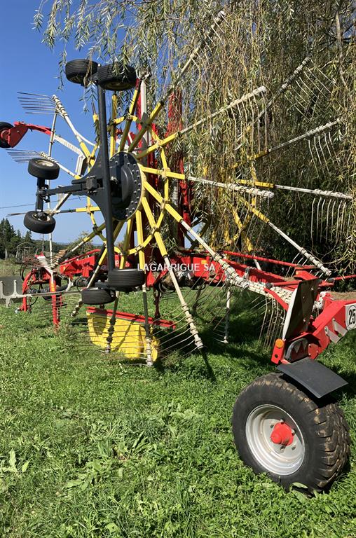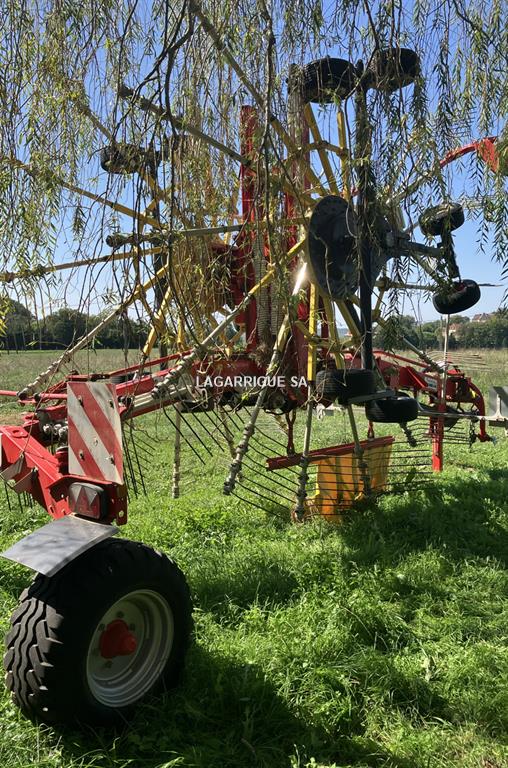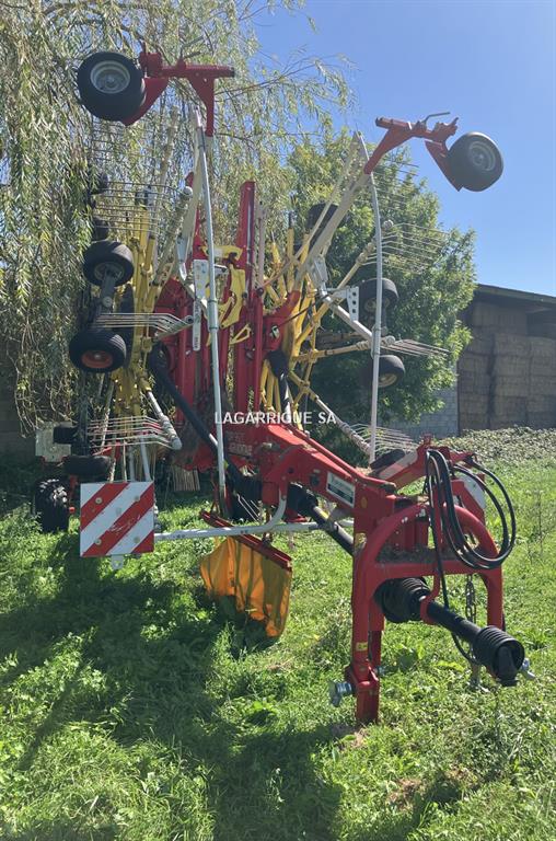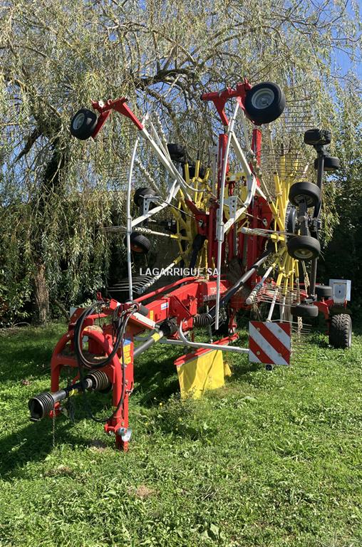 Andaineur POTTINGER TOP 962 C en Bon Etat / 2 rotors / largeur travail 9,60 m / 15 bras / andain central / cardan grand angle / bâche hydraulique