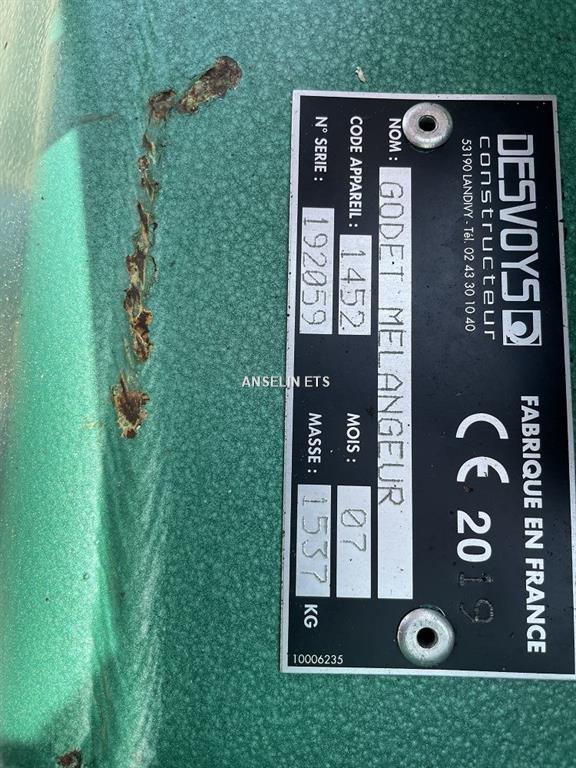 melangeur moyenne capacite 2.80m, sortie avant gauche, fraise de dessilage, rehausse, lame d'usure boulonnee, 2 selecteurs, 3 fonctions, boite a bouton pre-cablee, clapet pilote, attelage merlo installation sur télescopique incluse d'occasion
