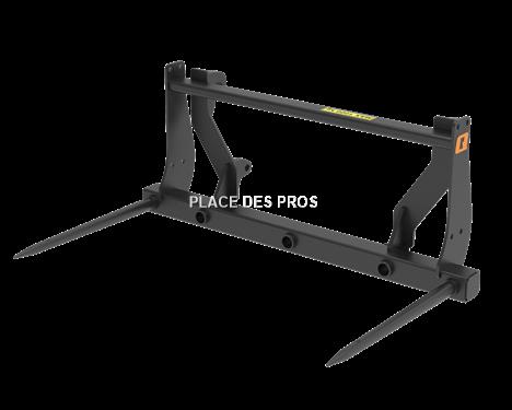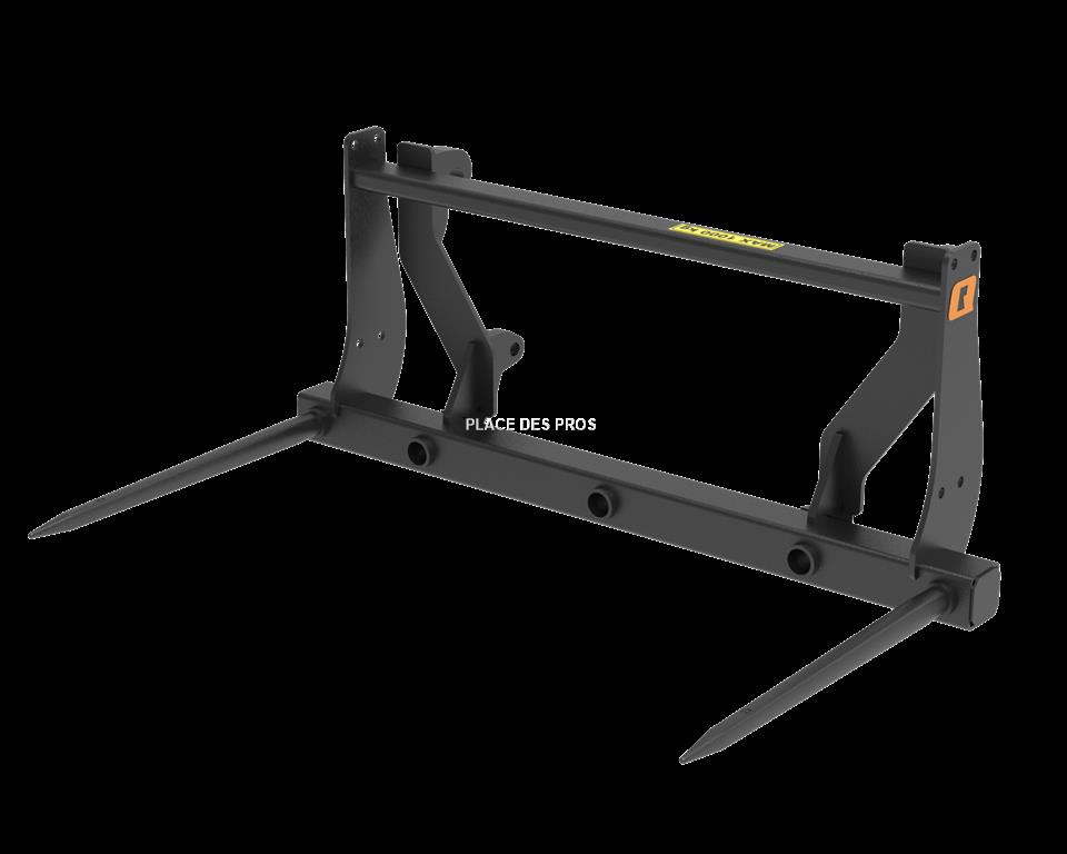 Le Pic Bal M est un outil simple et robuste pour la manutention des balles rondes et carrées. Les dents inférieures du cadre peuvent être installées à 80 ou 130 cm l'une de l'autre. Le Pic Bal M peut être fourni en option avec une extension arrière boulonnée assurant un meilleur support de la balle supérieure. L'extension arrière est un dispositif de sécurité que nous recommandons fortement, surtout si le chargeur n'est pas à parallélogramme ou si le tracteur est sans cabine. Attelage Eur Avec 2 dents 124cm incluses