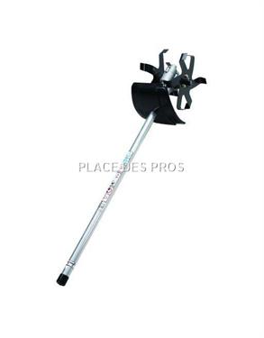 Accessoire optionnel houe bineuse pour multi-outils PAS-2620ES -Poids à sec : 2,3 kg -Longueur : 907 mm -Diamètre du tube de transmission : 6,1 mm -Diamètre du tube principal : 25 mm -Diamètre de la houe bineuse : 220 mm -Largeur de travail : 161 mm