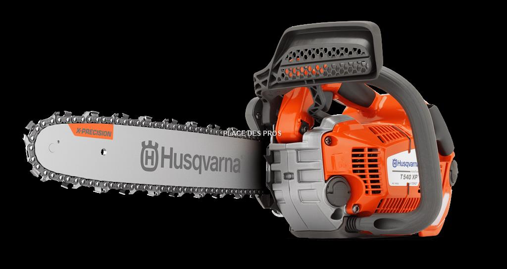 Tronçonneuse élagueuse HUSQVARNA T 540 XP en 35 cm Coupe : 35 cm (Disponible en 30 cm) Chaine HUSQVARNA 325" P - 1.1 - 59 Maillons Vitesse de chaîne (133% de la puissance maxi) : 25,8 m/s Moteur thermique 2 temps à Allumage Électronique Puissance : 1.8 kw ; 2,45 cv Cylindrée : 38 cm3 Fonctionne au mélange 2% Poids 3.9 KG Carter moteur en magnésium