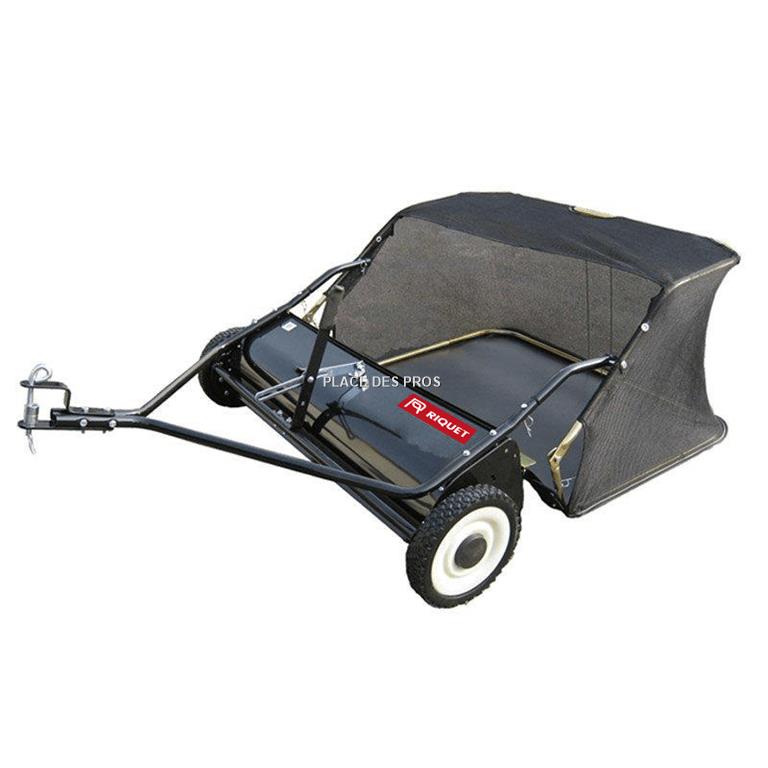 Se compose de : - Balayeuse tractée 96 cm - Mode d'emploi Particularités : Largeur de ramassage 96 cm - Diamètre des brosses 25 cm - Roue polyester diamètre 25,4 cm , largeur 4.5 cm - Attelage universel - Capacité du sac 340 litres Domaine d'application : - Pour ramasser l'herbe coupée, les feuilles et autres débris - Utilisation pour les pelouses et voiries Avantages : - Offre une meilleure adhérence des roues de la balayeuse pour garantir un ramassage efficace des débris - Son design permet de vider le bac facilement sans quitter le siège du tracteur - S'adapte à toutes les tondeuses autoportées disponibles sur le marché