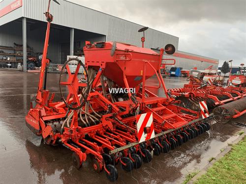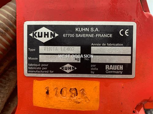 COMBINE DE SEMIS KUHN, COMBINE DE SEMIS PNEUMATIQUE 4METRES KUHN DE 2003, HERSE KHUN HR403D, DEMONTAGE RAPIDE DES DENTS / TRACEURS, SEMOIR KUHN VENTA LC402, DISTRIBUTION PNEUMATIQUE, ROUES DE RAPPUIES / ENFOUISSAGE DOUBLE DISQUES, ECARTEMENTS 12.5CM, CAPTEUR DE FOND DE TREMIE, TRACEUR DE PRELEVE, HERSE PEIGNE