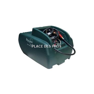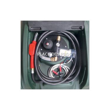 Bouchon cadenassable, filtre à fioul, Pistolet automatique, Raccord tournant, 6m de tuyau Ø3/4 antistatique, pompe 40 ou 60L/minute, bouton marche/arrêt, câble de branchement 4m + pinces.