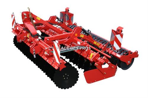 Déchaumeur Kverneland Qualidisc 3000 PRO Largeur de travail 3M00 24 disques indépendants Espacement entre les disques 245mm Dimension des disques 600mm Dégagement entre poutre 900mm Dégagement sous châssis Section châssis 100X100X8 Réglage hydraulique du rouleau