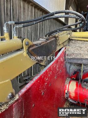 Portée - Cde électrique Ø balles 1,80M Boitier 540Trs/min Entrainement par boitier 2 vitesses turbine cde par téléflexible Cardan roue libre et limiteur de couple Double commande : passerelle et tracteur Bras télescopique Démêleur hydraulique Goulotte latérale haute Panneaux de signalisation Griffe articulée Distribution par soufflerie à gauche Distance d'éjection : 15M Diviseur débit