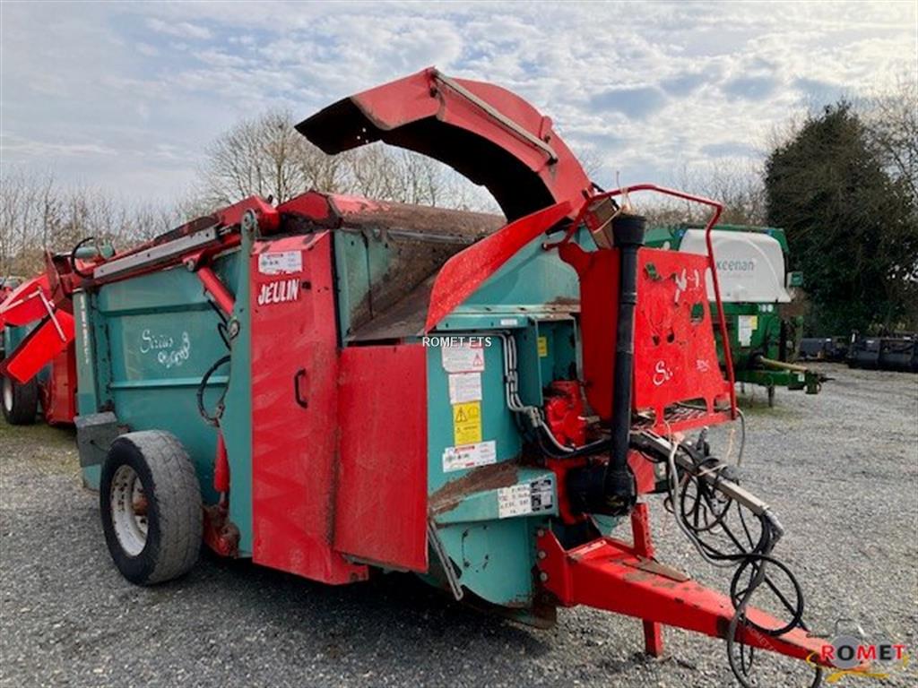 Griffe de désilage Boitier bi-vitesses 1000Trs/min Hérissons démêlleur entrainement méca- Distribution droite et gauche Frein de parking et hydraulique Flèche avec barre attelage sur bras Cardan avec friction Attelage trainé Distance d'éjection : 18,00m Diviseur débit