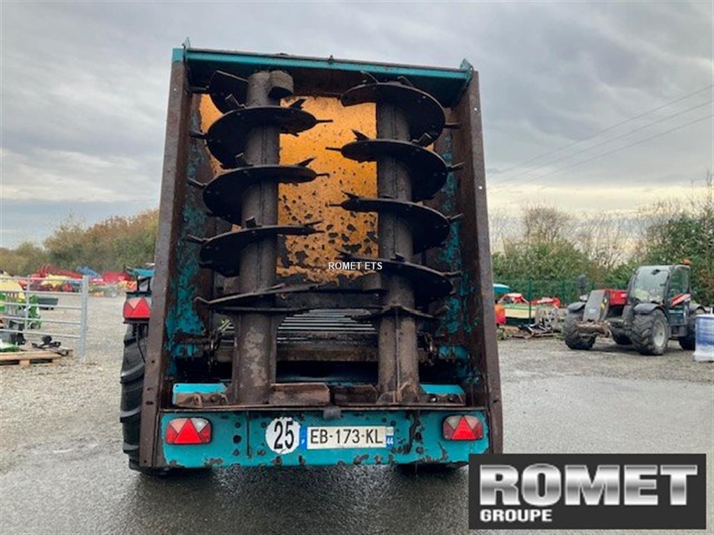 Suspension de flèche Lames ressorts Béquille hydraulique Boitier 1000Trs/min Cardan grand angle Central hydraulique Capacité tonnage : 18T 2 chaines Porte AR Hérissons verticaux Largeur épandage : 12 à 15m Essieu simple Boitier de commande
