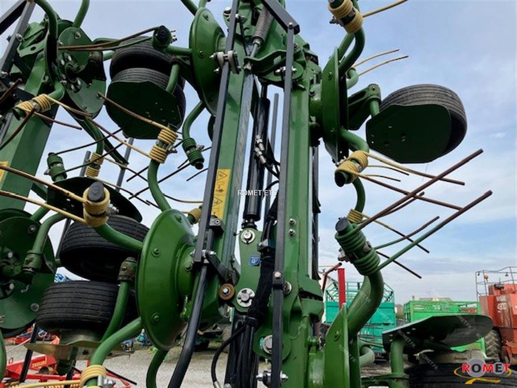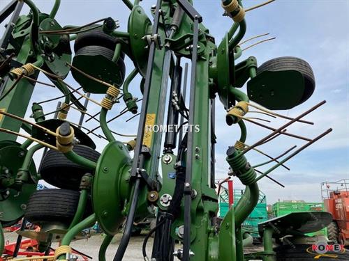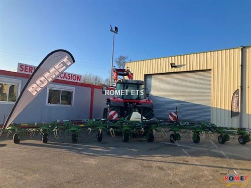Largeur de travail 11m20 10 toupies 6 bras par toupie PTO 540 T/min Fanage bordure hydraulique Stabilisateurs hydrauliques Dents OptiTurn courbées Boitier avec roue libre intégrée Roues 16/6,50x8 Roues 16/9,50x8 sur 2 toupies centrales Position fourrière de série Eclairage et signalisation