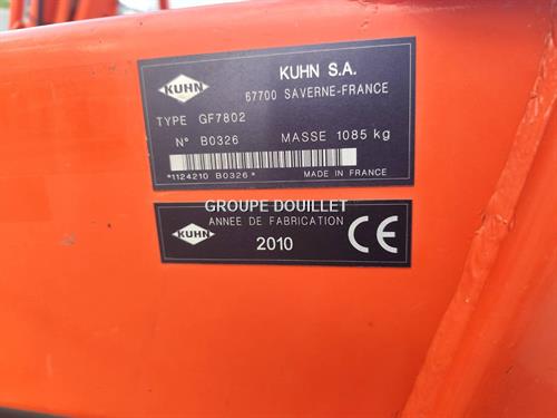 FANEUR KUHN GF 7802 – 7M80 – ANNÉE 2010 – TARIF ANNONCÉ RÉVISÉ AVEC ÉCLAIRAGE REMIS EN CONFORMITÉ – MACHINE EN EXCELLENT ÉTAT AU VU DE SON ÂGE – AUCUNE DENT HS - REVISION EN COURS