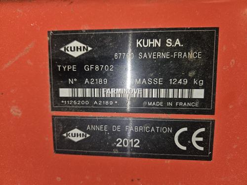 Marque: KUHN Modèle: GF 8702 Année: 2012 Largeur travail (m): 8.70 Nombre de rotors: 8