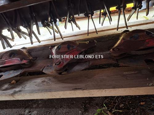 Conditionneur à doigts doubles, 3 couteaux / assiette, 8 assiettes, démontage rapide des couteaux, panneaux de signalisation, cardan, suspension hydraulique.