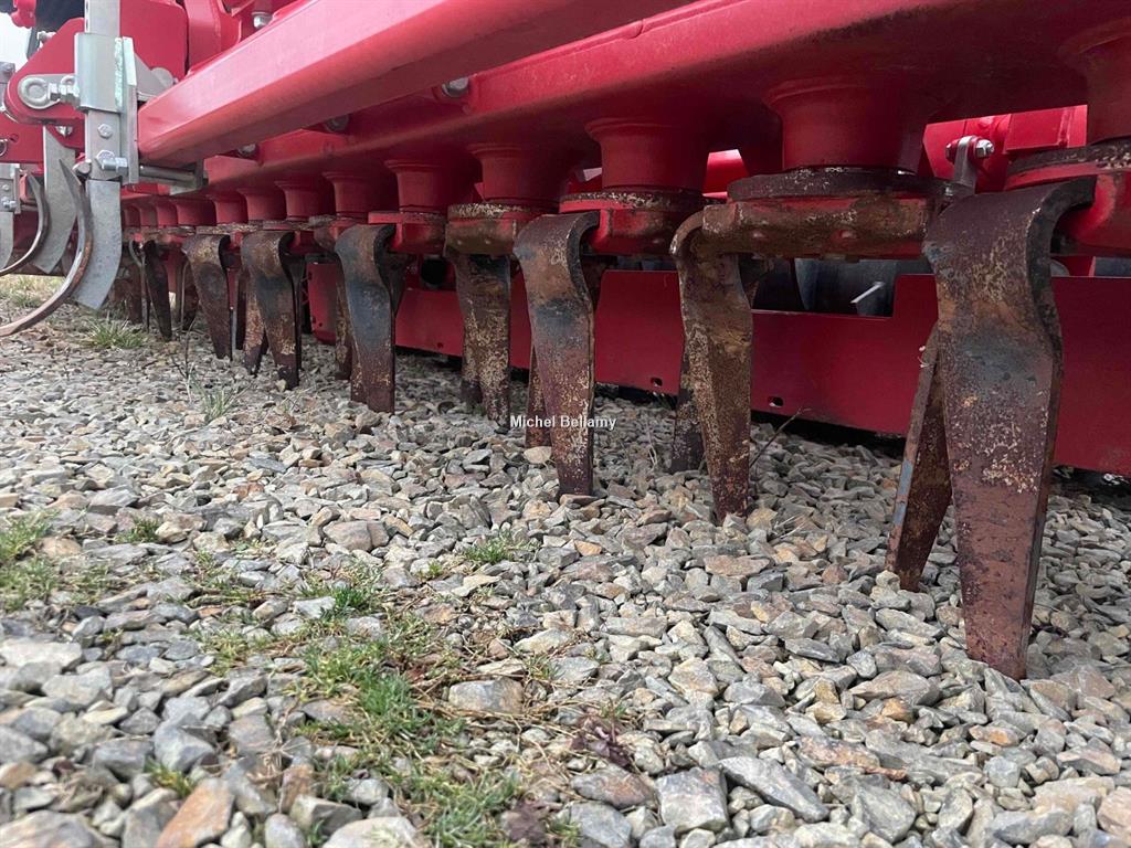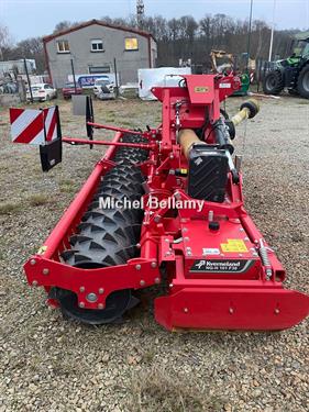 Largeur de travail (m) -> 4,50 Largeur de transport -> 2,80 Nombre de rotors / dents ->18/36 Poids avec rouleau Packer Ø 575 mm (kg) -> 2 810 Puissance maximale admissible (CV) -> 300 Régime d’entraînement (tr/min) / Vitesse des rotors (tr/min) -> 1 000 / 336 std (362, 450 options par pignons interchangeables) Type de cardan1-3/8’’ Z6 - 1 000 tr/min Limiteurs débrayables à cames sur chaque extension Attelage Cat III Dimensions caisson (mm) -> 140 x 400 - épaisseur 6 mm Épaisseur des pignons (mm) -> 40 Diamètre d’arbre des rotors (mm) -> 45 / 50 Roulements coniques Dimension dents à fixation rapide Quick-Fit (mm) -> 15 * 330 Hydraulique -> 2 DE nécessaires Support efface-traces Sans PTO arrière