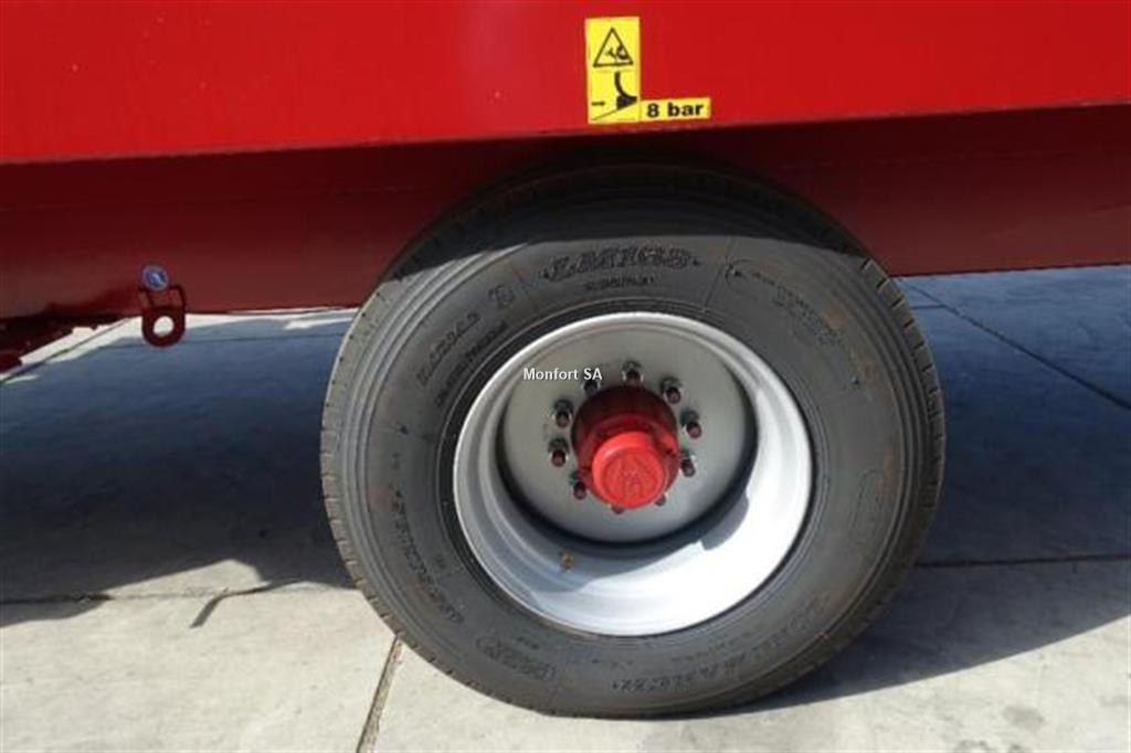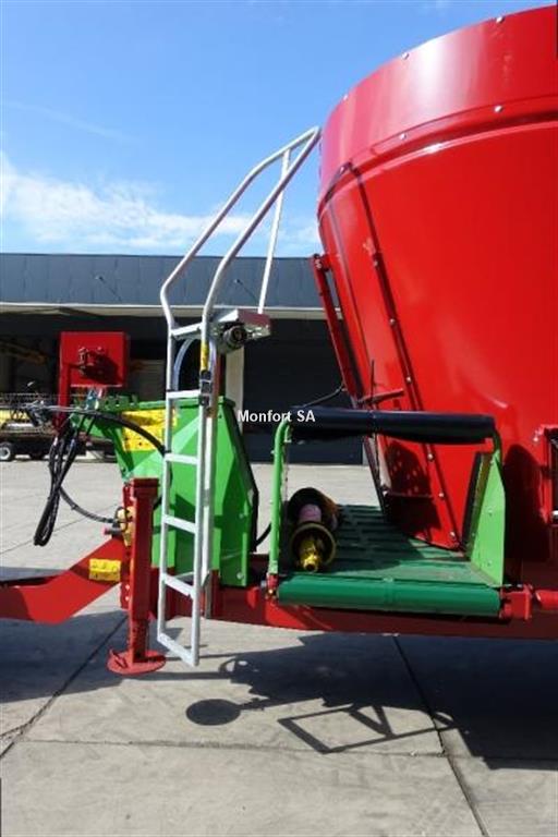 Longueur 7.06m; Largeur avec tapis transversal 2.28m; Largeur avec trappe de déchargement 2.38m; Largeur avec 2 trappes de déchargement 2.48m; Largeur aux roues 2.25m; Hauteur rehausse pour 21.5m³ 0.18m; Longeur avec tapis frontal 7.76m; Longeur avec tapis arrière 7.27m; Hauteur de déchargement tapis 0.81m; Poids 7150kg; Voie 1.720mm; Epaisseur trémie 8mm; Epaisseur fond 20mm; Longueur intérieure de cuve avec anneau anti-débordement 5.19m; Hauteur 3-3.2m suivant roues; 2 vis mélangeuses étagées Vario pour un mélange doux et efficace; 2 boîtiers coaxiaux T très robustes avec protection individuelle