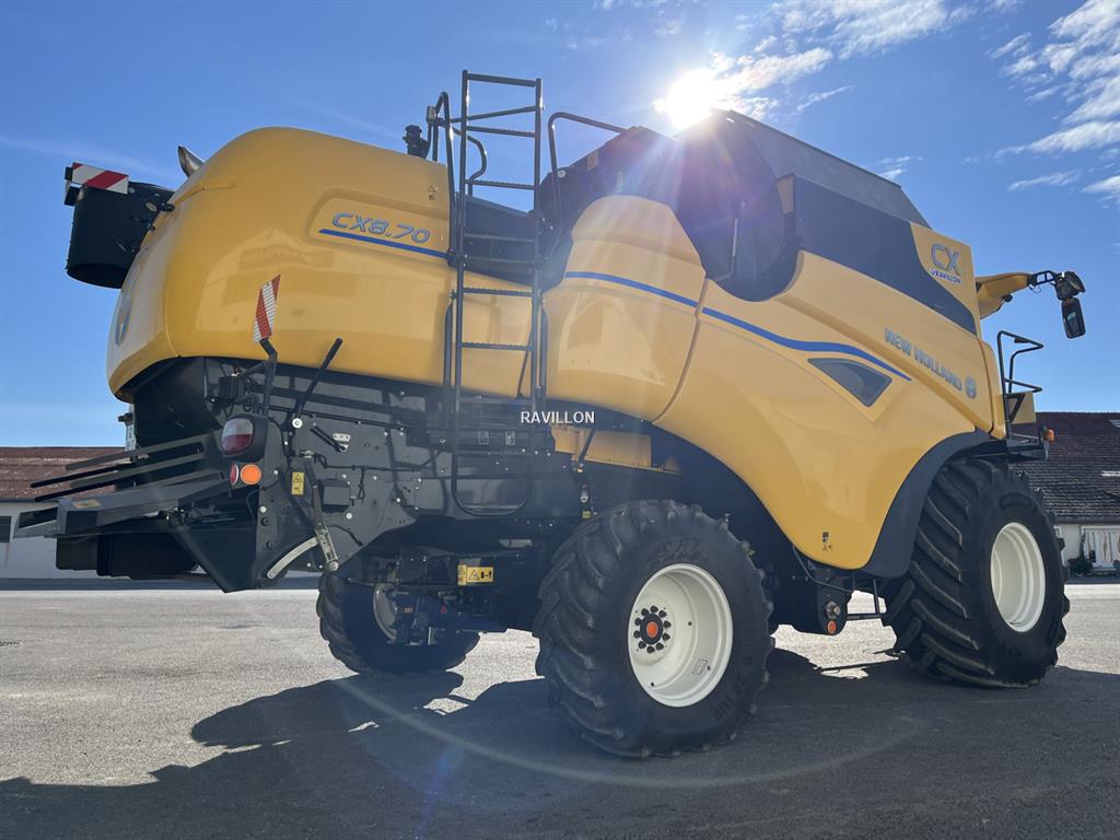 Marque : NEW HOLLAND Modèle : CX8.70 Année : 2024 Heures moteur : 401 Heures batteur : 278 Pré-disposition guidage : PREDISPOSITION GPS,SUPPORT ANTENNE Compensation : AUTONIVELLANT (CNH) Marque pneumatiques avants : MICHELIN Dimension pneumatiques avants : 800/70R32 Marque pneumatiques arrières : MITAS Dimension pneumatiques arrières : 500/80R28 Largeur coupe (m) : 7.62 Modèle coupe : VARIFEED Scie(s) à colza : 2 SCIES HYDRAULIQUE Modèle chariot : NEW HOLLAND 4 ROUES Options générales : BROYEUR,CAPTEUR HUMIDITE,CAMERA,COFFRE POUR SCIES A COLZA,EPARPILLEUR MENUES-PAILLES,CROCHET AUTOMATIQUE