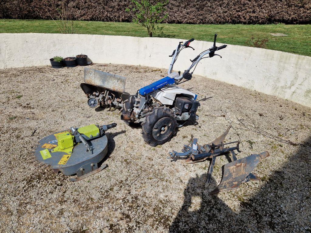 avec tous les accessoires : charrue- débroussailleuse rotative- rotovateur sarclofraise - système de liaison Quick fit