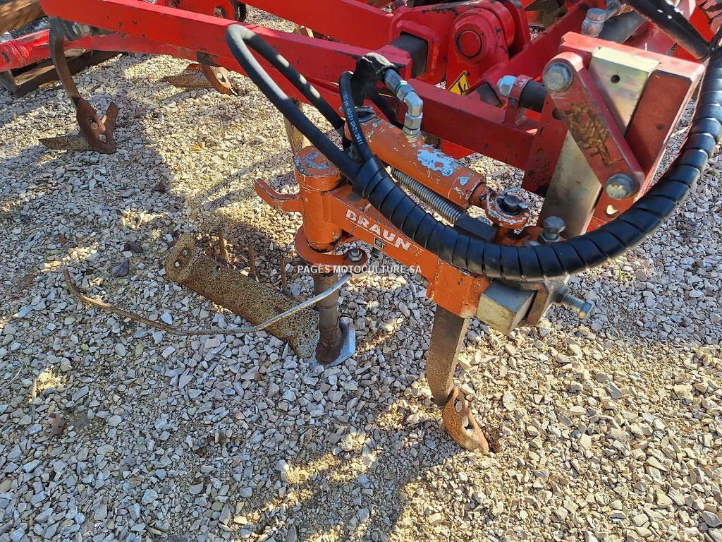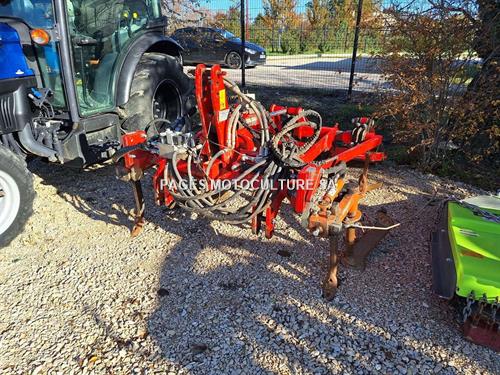 Type : Cadre interceps Marque : Grenier Franco + Braun Modèle : 5 dents étroit Descriptif technique : Année 2019, 5 dents, sécurité non stop mécanique, relevage vertical hydraulique, écartement hydraulique des supports bineuse + Paire d'interceps hydraulique de marque Braun LUV Perfect avec arbre interchangeable, lame de 500 mm, sélecteur hydraulique, dents ouvreuses, rouleau barre fixe, outil porté 3 points, largeur de travail 1.00m - 1.50m. Bon état général.