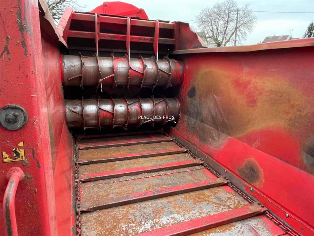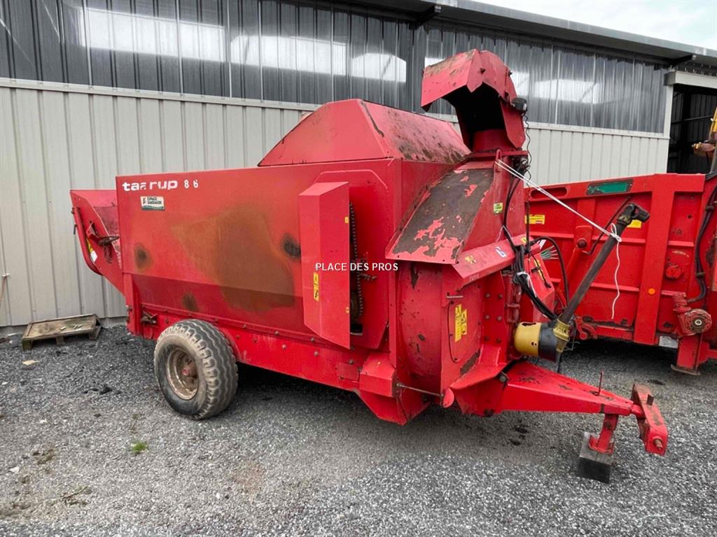 Pailleuse Taarup KD856, capacité 6m3, 2 démêleurs, goulotte pivotante, commande électrique, boitier 2 vitesses, porte arrière.