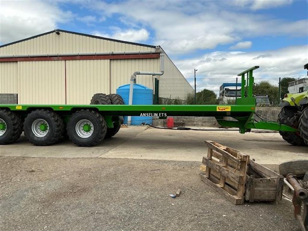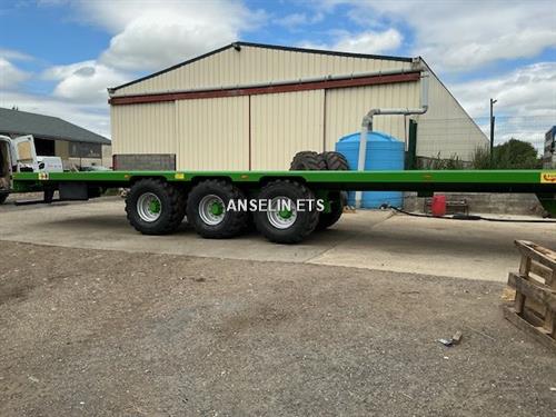 dernier frein hydraulique PTAC 32T Longeur 12M largeur 2m54, hauteur 1M34, essieu triden diam 130 10 axes, 1 suiveur frein 400x80, frein hydraulique, roues 560x60R22.5 BKT FL630 neuf, fleche ressort transversal, arriere plat soude, bequille hydraulique