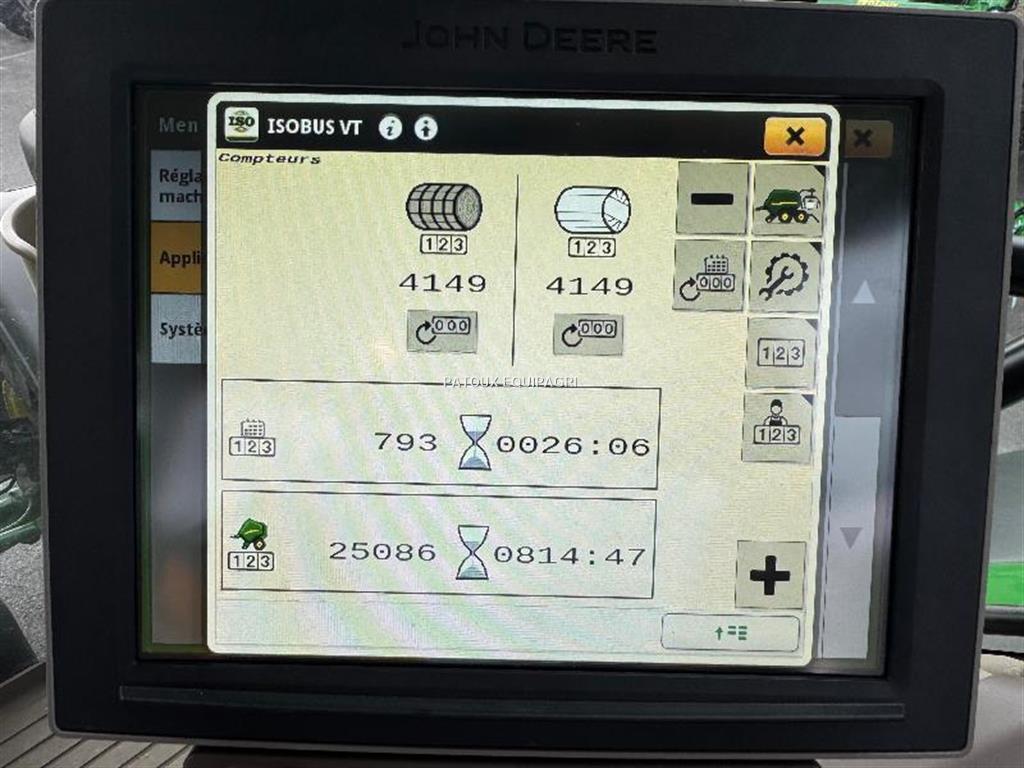 Commentaires detailles (EQUIP) : ISOBUS / CONSOLE GS1800/ ROUES 600 R45 22,5/ CAMERA / 17 COUTEAUX / PHARES DE TRAVAIL/ GRAISSAGE AUTOMATIQUE / FLECHE HAUTE/ VIRE BOTTE 1/4 DE TOUR /