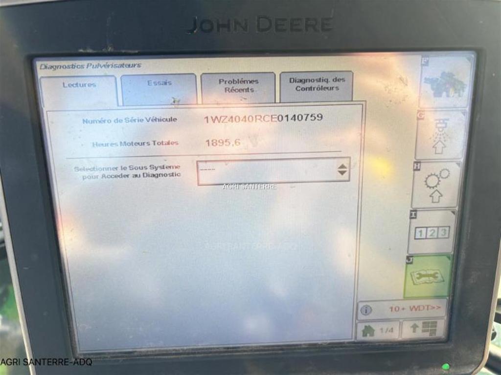 Commentaires : 1896 H MOTEUR ET 292 H DE PULVE / 12345 HA / VOIE VARIABLE HYDRAULIQUE - RAMPE ACIER 36/38M / CIRCULATION CONTINUE AVEC COUPURES PNEUMATIQUES / CROCHE