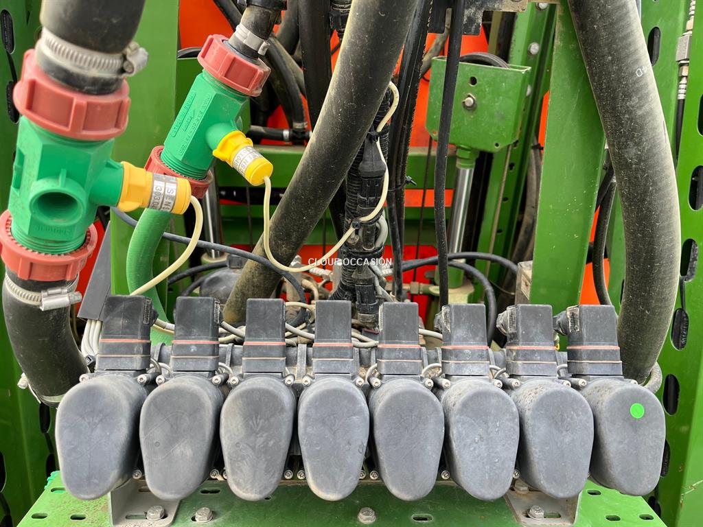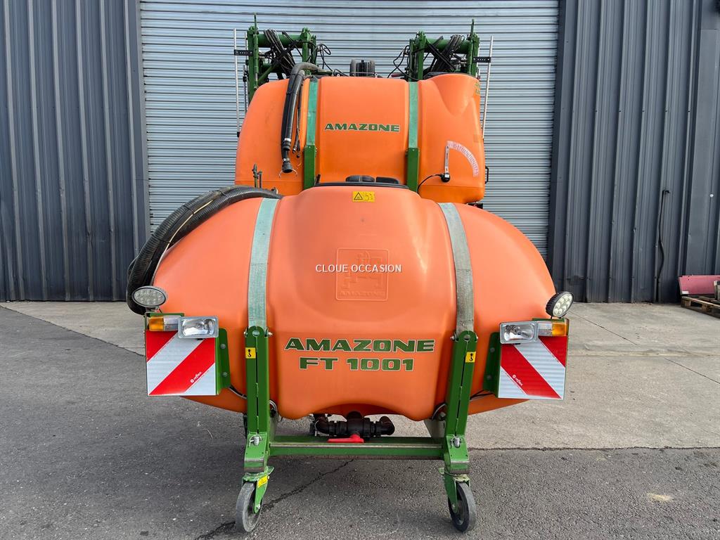 Pulvérisateur porté AMAZONE UF 1801 PREMIUM - de 2014 - 2800 litres de capacité totale - 28 mètres de largeur d'épandage - distance contrôle - sans boitier et joystick - rampe acier - 7 tronçons - hauteur automatique - éclairages buses à buses - circulation continue - correcteur de devers - signalisation - avec cuve avant eau claire 1000 litres - contrôle pulvé valide