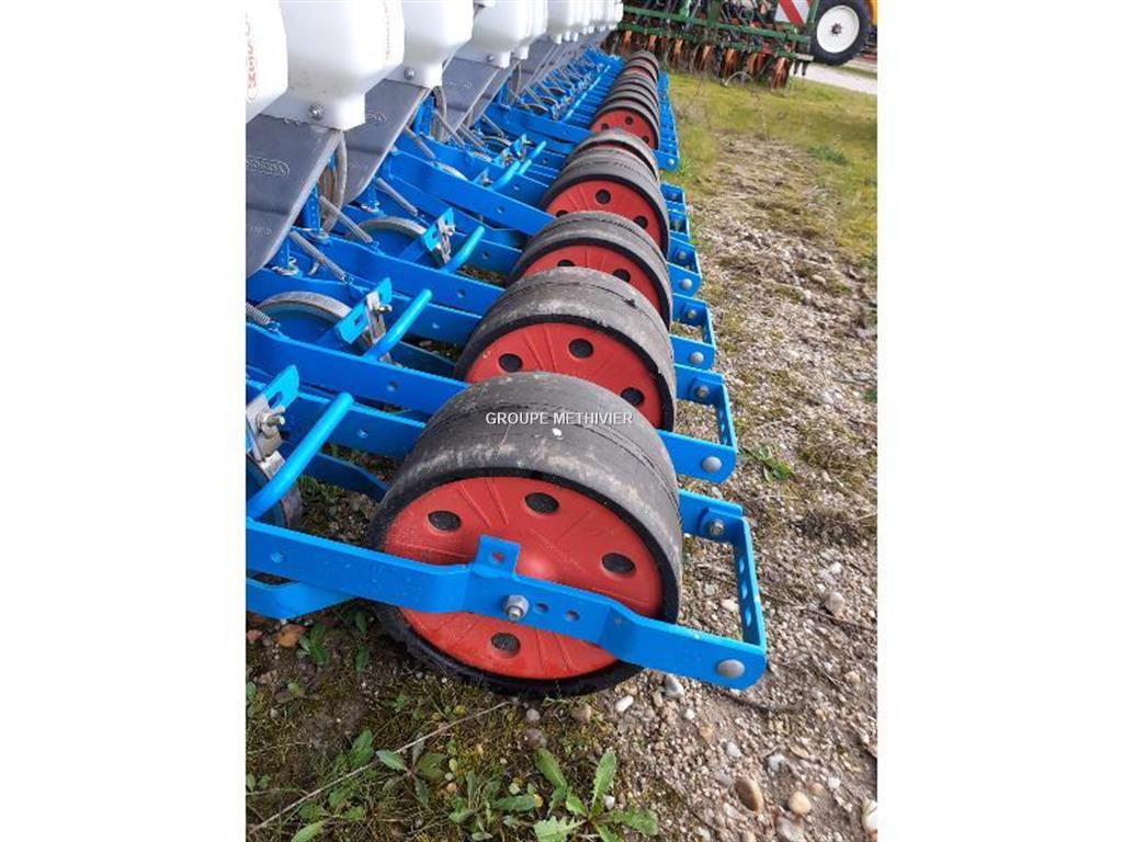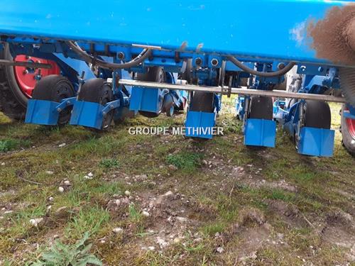18 rangs oignons/echalottes (3 planches), Ecartement 28 cm, Largeur de travail 6 m , A socs etroit pointu oreilles allongees, Roue plombeuse, Roues Fa