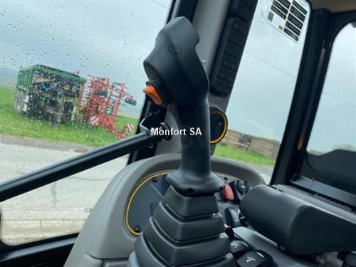 Moteur JCB DIESELMAX; Cylindrée: 4.8L; Admission Turbocompressée, refroidie; 4 cylindres; Puissance brute: 150cv / 112kW; Transmission Powershift JCB PS900, 8 vitesses; Filtre à air cyclonique; Pré-filtre cyclonique; Système de refroidissement à mailles larges; Convertisseur de couple verrouillable dans les rapports 1-8; Vitesse de translation 40 km/h; Déconnexion de la transmission depuis la pédale de frein