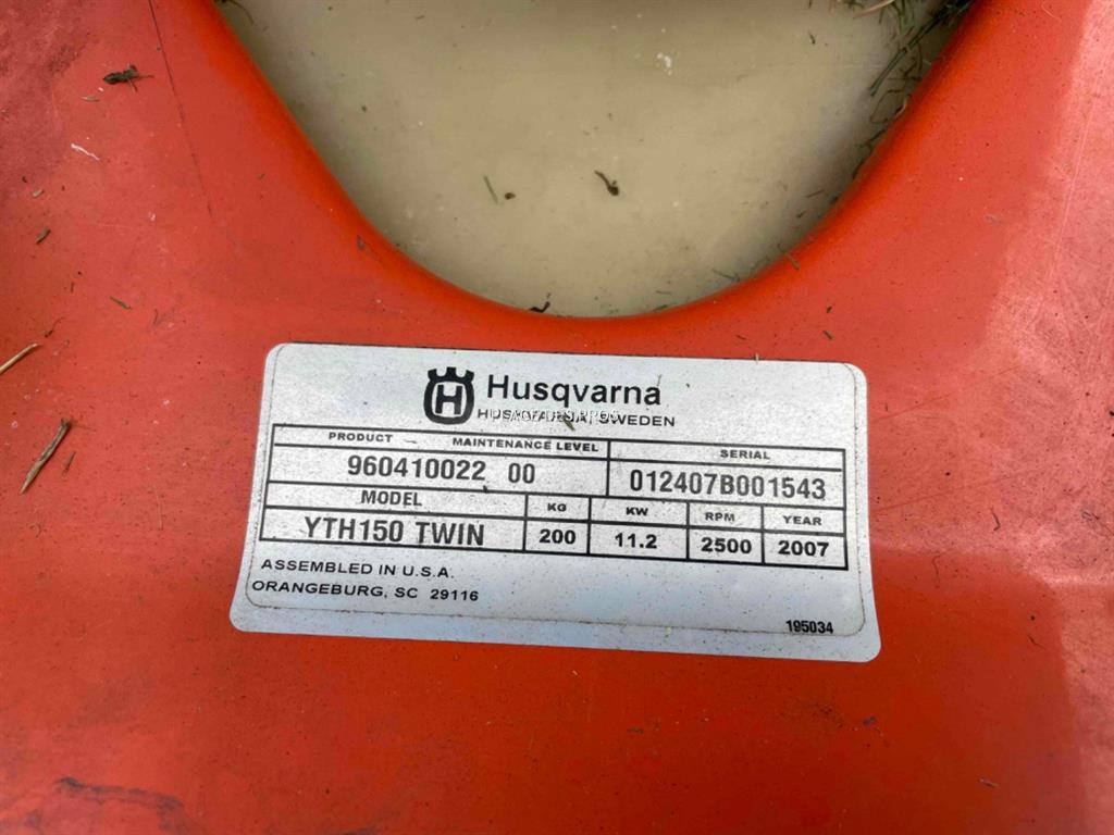 Tondeuse Husqvarna YTH150, boite de vitesse hydrostatique, éjection latéral, largeur de coupe 107cm, fonctionnel, vendu dans l'état