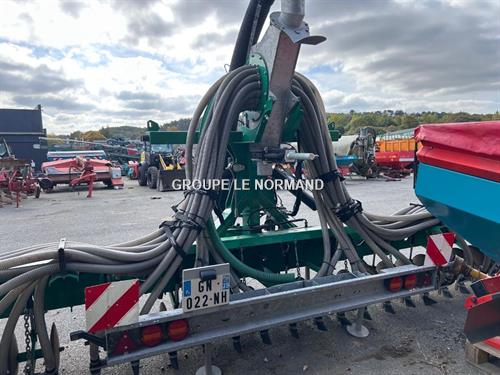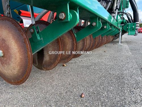 Injecteur avec disques simples & ADS Largeur de travail 8 mètres Suspension pivotante pour éviter la surchage des disques lors des changements de directions Les disques sont équipés d'un système hydraulique pour le changement de direction au cours de l'enfouissement, pour le réglage indépendant de la pression de chaque disque et pour le réglage de la profondeur