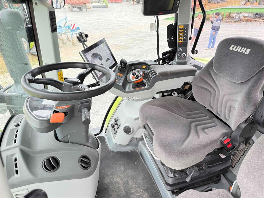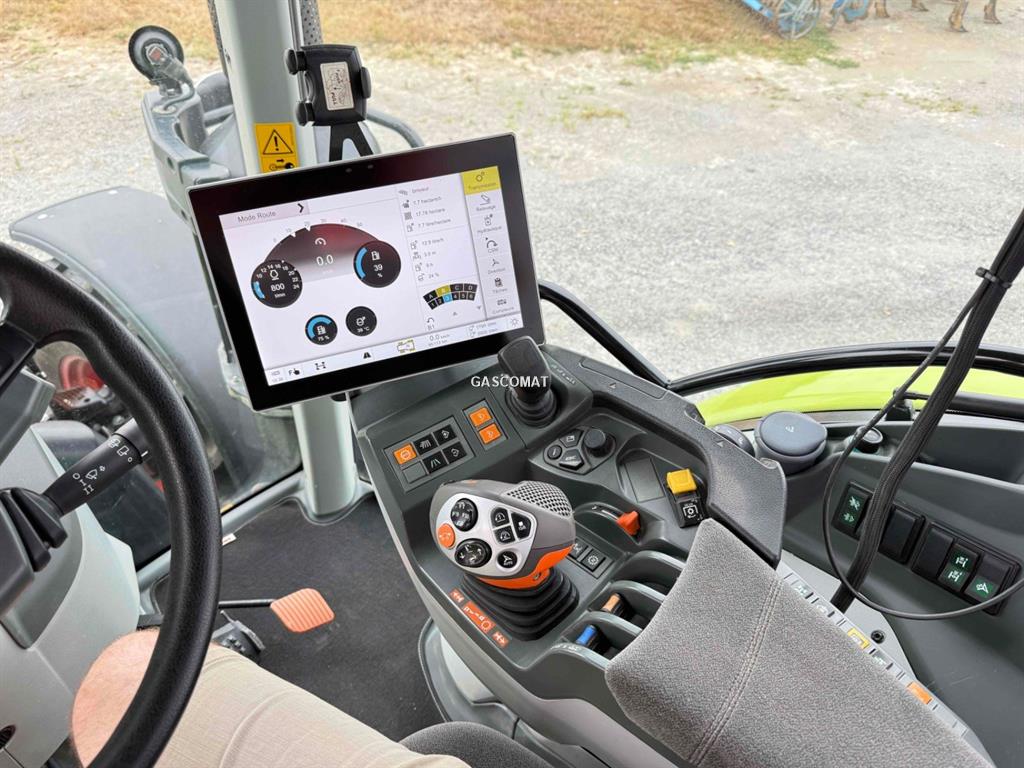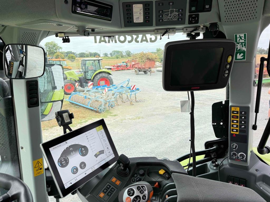 ARION 510 St5 380/85 R28 Michelin Agribib / jante variable 460.85 R38 MICHELIN AGRIBIB-Roue voile variable Relevage avant CLAAS 3,0 t Longerons transmission et moteur relevage AV Commandes extérieures de relevage avant Terminal de commande CEBIS avec écran tactile HEXASHIFT 24 AV / 24 AR, HEXACTIV, CSM, limiteur de régime moteur Gestion des outils ISOBUS dans le CEBIS ELECTROPILOT CEBIS avec fonction vidéo 2 stabilisateurs réglables Barre oscillante à broche pour echelle à glissière Chape d'attelage arrière tournante, réglable en hauteur Freinage hydraulique et freinage pneumatique (double ligne) Circuit hydraulique load sensing 110 l/min 4 distributeurs E/H arrière programmables Sans coupleurs avant avec le relevage avant Kit Power Beyond Vitesse maximale 40 km/h Pont avant PROACTIV PDF AR 4 régimes : 540-1000 tr/min et 540-1000 ECO (sélect E/H) 1 embout PdF 1"3/8 de 6 cannelures Ailes AV pivotantes : largeur 410 mm Pont avant suspendu PROACTIV avec capteur d'angle Cabine à 5 montants avec suspension mécanique 4 points Vitre arrière teintée pour cabine 5 poteaux Hayon arr