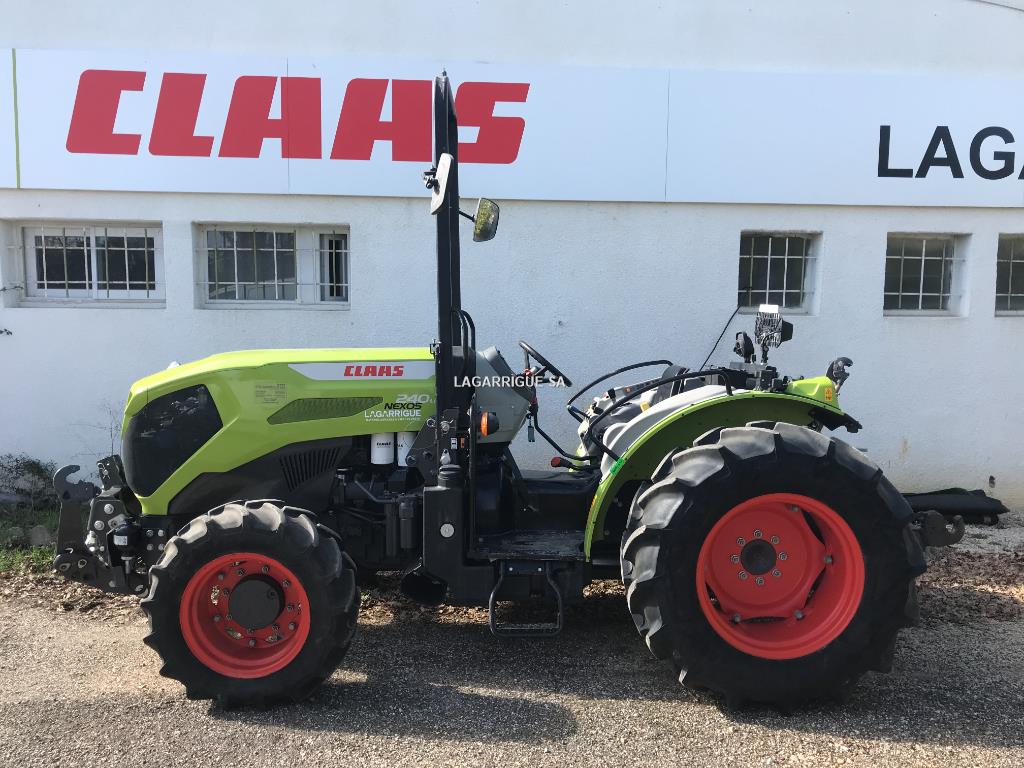 Tracteur CLAAS NEXOS 240 LD en Bon Etat / ARCEAU / 4 RM / Ad Blue / 4 cyls / relevage AV / twinshift boubleur sous charge 16 x 16 / inverseur hydraulique / freinage hydraulique / 40 km-h / PDF 540 + 1000 / 3 DE / retour libre / 3 pts AV + AR manuel / pneus MITAS AV 280/70R18 10% AR 380/70R24 10%