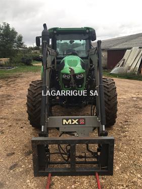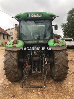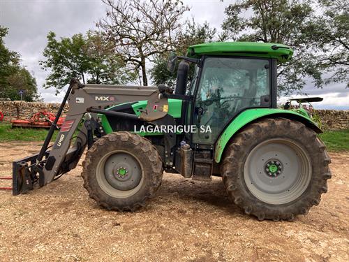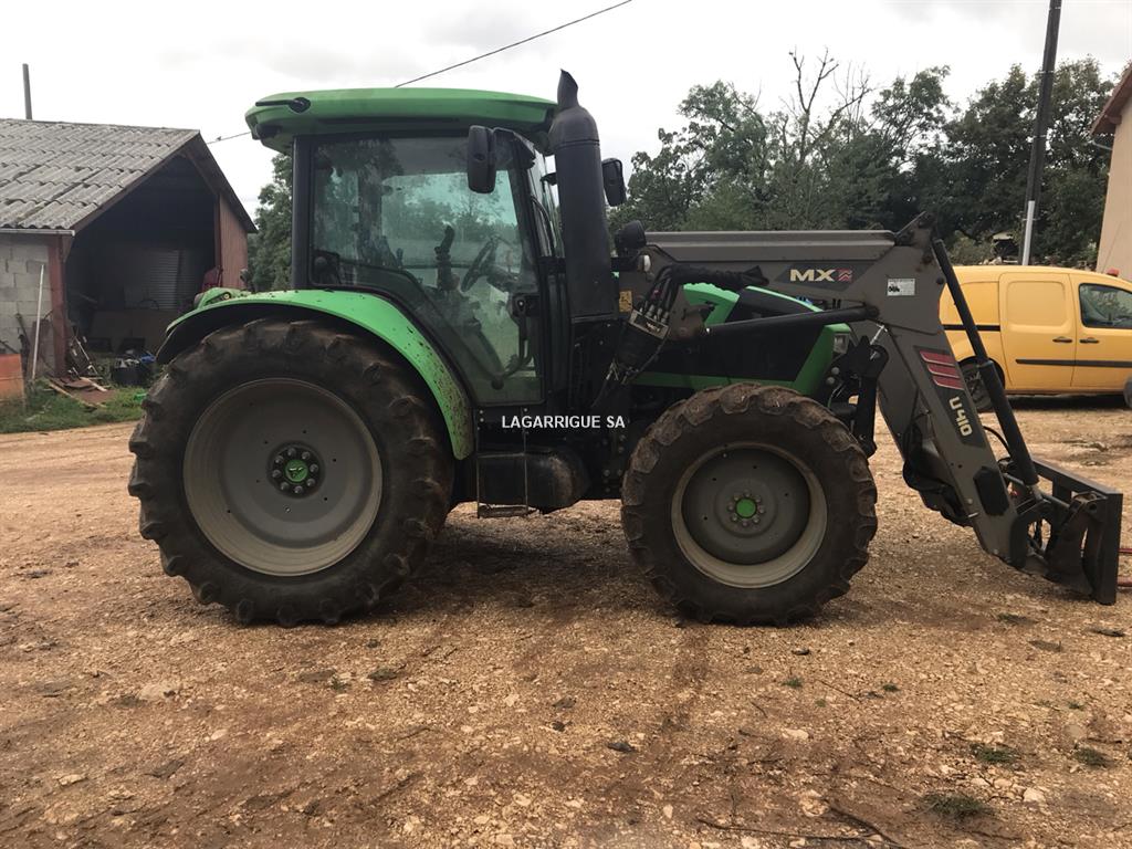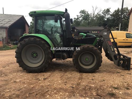 Tracteur DEUTZ FAHR 5115 en Bon Etat / 4 RM / Ad Blue / pont AV suspendu + relevage AV / boite mécanique doubleur sous charge / inverseur hydraulique / freinage hydraulique / 3 DE / pompe hydraulique avec couplage de pompe / retour libre / PDF 540 + 540E + 1000 + 1000E / clim / siège pneumatique / toit ouvrant vitré / échelle d'attelage / BO / 3 pts AV + AR / pneus AV BKT 380/70R28 40% AR Trelleborg 780/70R38 90% CHARGEUR MX U410 attache MX / monolevier propilot à cable / Mach