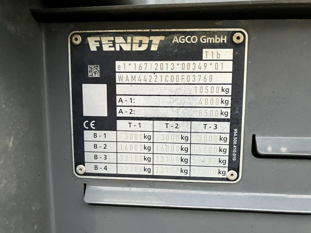 GARANTIE CONSTRUCTEUR 18.10.2026 OU 2000 HEURES AU 1ER DES 2 TERMES ECHUS - AILES AVANT PIVOTANTES - CLIMATISATION AUTOMATIQUE - TERMINAL 12'' - RETROVISEURS ELECTRIQUES - PONT AVANT SUSPENDU - CABINE SUSPENDUE PNEUMATIQUE - GUIDAGE TRIMBLE DE BASE - BOITE 50 KM/H - PDF 540/540E/1000 TOURS - POMPE HYDRAULIQUE 158 LITRES - RELEVAGE ET PRISE DE FORCE AVANT - ROUES 650/65R38 USURE DROIT 40 % USURE GAUCHE 30 % ET 540/65R28 MICHELIN 45% D'USURE - 4 DE - CHAPE + PITON + 3 EME POINT HYDRAULIQUE - BATI DE CHARGEUR FENDT