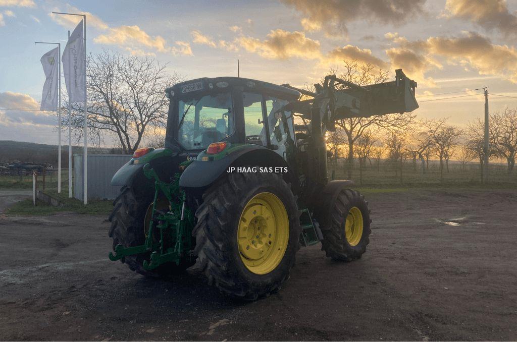 John Deere 6120M + Chargeur 623R Année 2023 et 885 heures Transmission Autoquad Plus Ecoshift 40 km/h Pont avant et cabine suspendue Hydraulique 114L/MN 3 DE electriques Chargeur 623R Joystick électriques, 3eme fonctions, parallélogramme mécanique, tablier euro/mx Benne multiservices Michelin 480/70R38 et 420/70R24 Visible sur la base de Maixe Entretien sera fait pour la mise en main Transport possible avec supplément