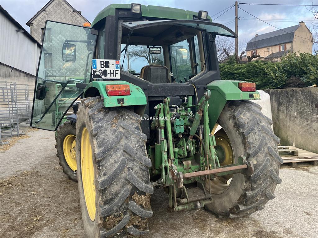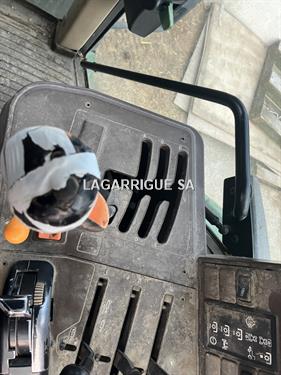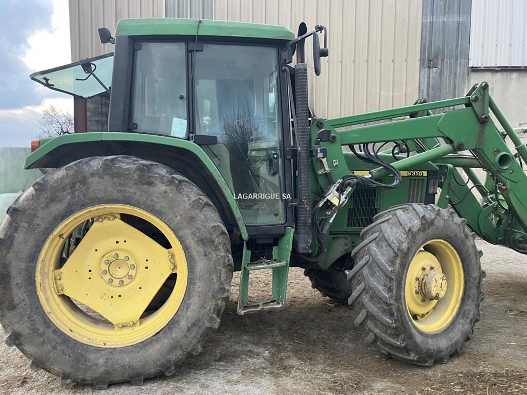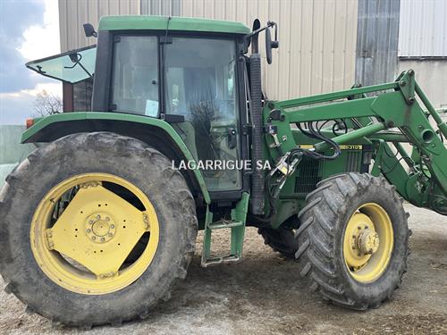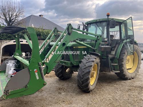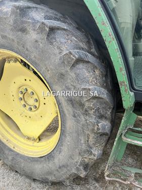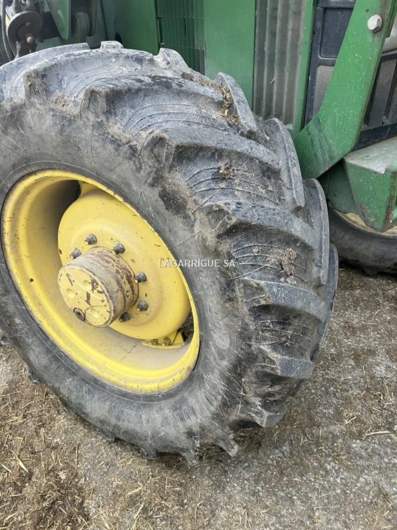 Tracteur JHON DEERE en Bon Etat / 4 RM / 4 cyls / PowerQuad / inverseur hydraulique / freinage hydraulique / 35 km-h / PDF 540 + 540E + 1000 / 3DE / retour libre / crochet ramasseur / 3 pts manuel / clim / siège méca / pneus Firestone AV 420/70R28 40% AR 460/85R38 80% CHARGEUR JD attache Euro + parallélogramme méca
