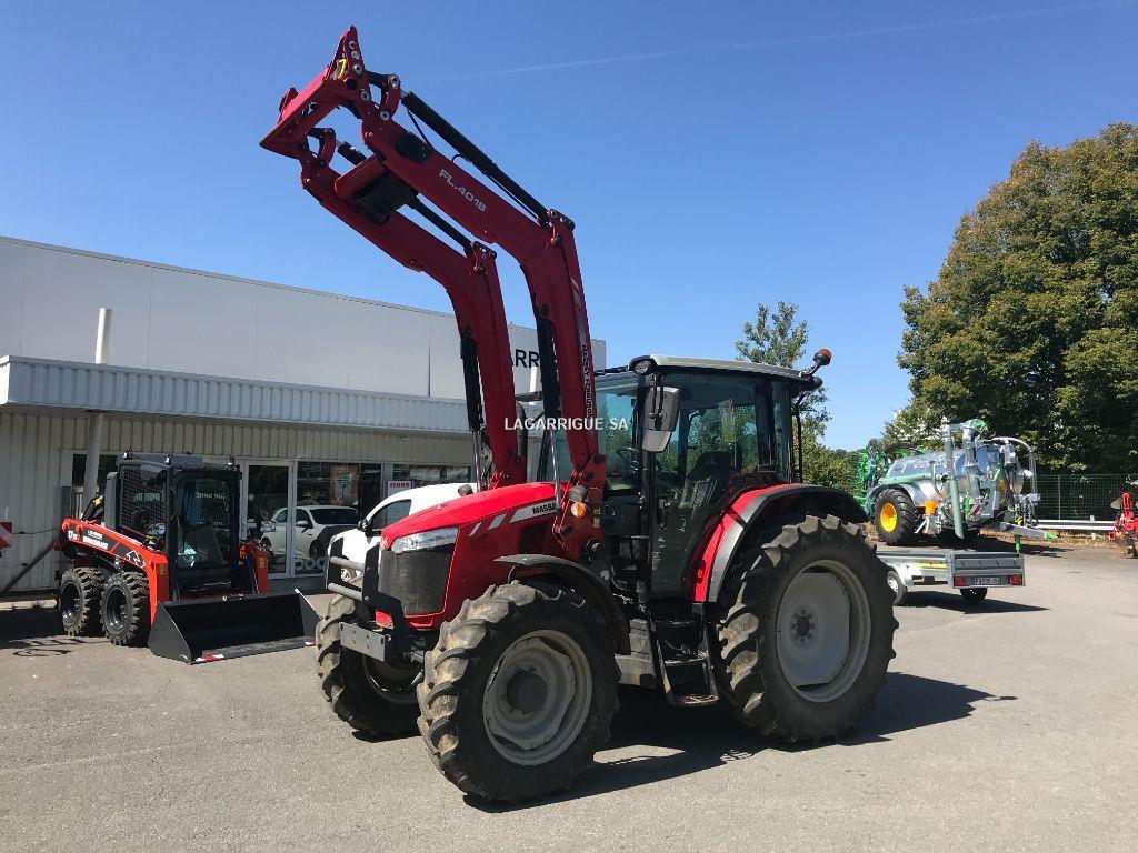 Tracteur MASSEY FERGUSON 5711 ESSENTIAL DYNA 4 en Bon Etat / 4 RM / 4 cyls / toit panoramique / Ad Blue / ailes AV pivotantes / boite DYNA 4 / 40 km-h / inverseur hydraulique / freinage pneumatique + hydraulique / PDF 540 + 540E + 1000 / 3 DE / clim / siège pneumatique / BO / chape / retour libre / 3 pts manuel CHARGEUR MASSEY FERGUSON FL 4018 + 3 ème fonctions + attache Euro + monolevier teleflexibles