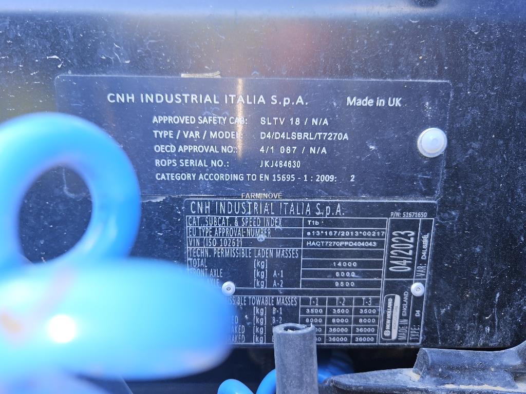 Commentaire guidage : Rtk Marque: NEW HOLLAND Modèle: T 7 270 AC BLUE POWER Année: 2023 Heures estimées: 1400 Type de transmission: VARIATION CONTINUE Vitesse maximale: 50 KM/H Freinage: HYDRAULIQUE + PNEUMATIQUE Type de cabine: SUSPENSION MECANIQUE Tracteur propre, equipé clean fix et PDF Avant, repris sans masse frontale