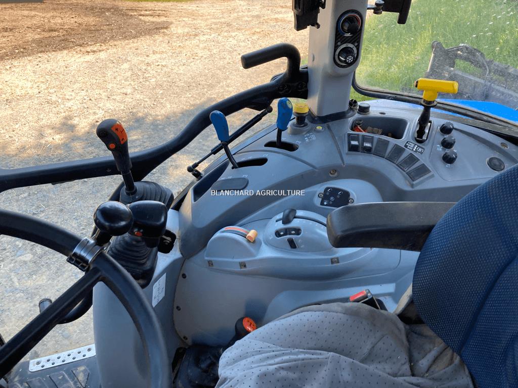 TRACTEUR NEW HOLLAND T5.115 DU, TRACTEUR NEW HOLLAND T5.115 DUAL COMMAND D OCCASION, CABINE STANDARD CLIMATISEE, BOITE ELECTRO COMMAND, 3 REGIMES PDF, 3 DISTRI ARR, 2 DISTRILATERAUX AVEC JOYSTICK, CHAUSSE EN 380/70R24 20% ET 480/70R34 20%, AVEC CHARGEUR STOLL 750 TL ANNEE 2019 SERIE 7104671 SANS OUTILS