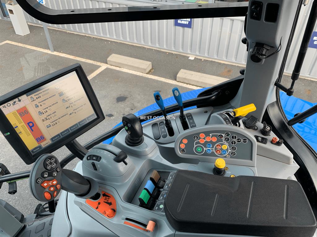 TRACTEUR NEW HOLLAND T5.120 DY, TRACTEUR NEW HOLLAND T5.120 DYNAMIC COMMAND DE 2023, 4 RM - PONT AV. SUSPENDU - CABINE SUSPENDUE BASSE - PTO 540/540E/1000, LOAD SENSING - 2 DE LATERAUX + JOYSTICK - 2 DE ARR MECA +, 2 DE ARR ELEC - RETOUR HUILE - POIGNEE IMPULSION - PACK 10 FEUX, ADPATATION STOLL + HYDRAULIQUE SUR DE LATERAUX, PNEUS ALLIANCE 380/70R28 80 % - 480/70R38 50 %