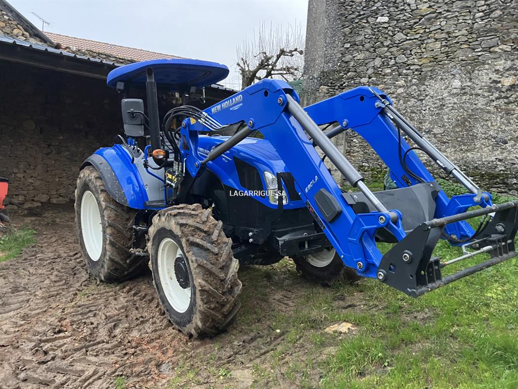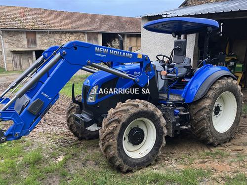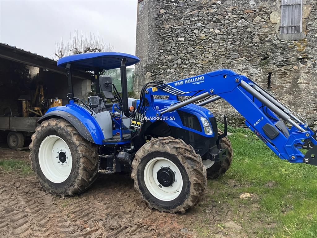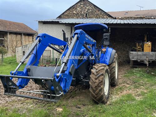 Tracteur ARCEAU NEW HOLLAND T5-120 en Tés Bon Etat / 4 RM / boite méca doubleur / inverseur hydraulique / freinage hydraulique / PDF 540 + 1000 / 3 DE + 1 retour libre / BO / échelle d'attelage / pneus Michelin AV 380/70R24 10% AR 480/70R10 % CHARGEUR NEW HOLLAND 680 LA attache euro - parallélogramme méca
