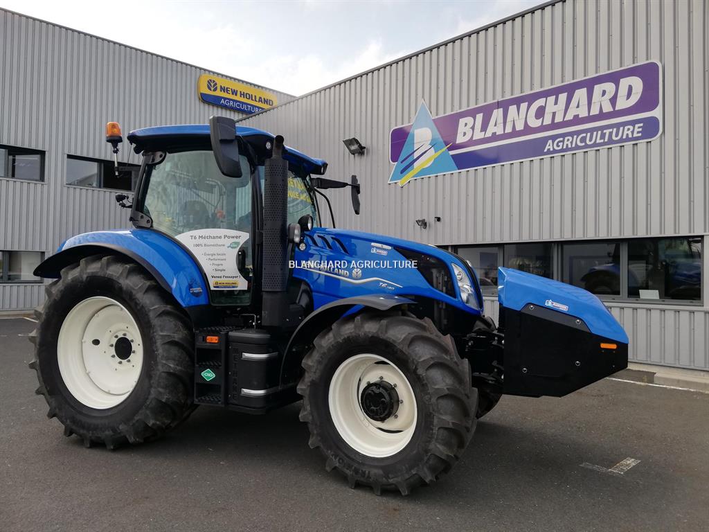 TRACTEUR NEW HOLLAND T6.180 ME, TRACTEUR NEW HOLLAND T6.180 METHANE EC, RESERVOIR GNV 455L - PACK 14 FEUX + DEPORTES - TOIT HAUT, CLIM AUTO - RETROS ELECT - PRE DISPO GUIDAGE - FREIN PNEU, RADIO - SUPPORT BOITIER - SANS HTS - ISOBUS 1, AILES AVANT - AILES ARR FULL COVER, PNEUS VREDESTEIN 540/65R28 - 650/65R38