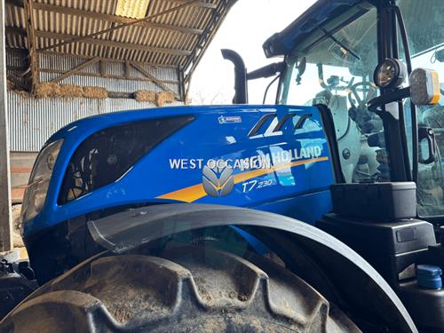 T7.230 PC S5, TRACTEUR NEW HOLLAND T7.230 PC CLASSIC, PACK DELUXE - FINITION CONFORT, PONT SUSPENDU - CABINE SUSPENDUE - 40 KM/H, PTO 540/1000 - 4 DE MECA - RETOUR HUILE, RELEVAGE AVANT - FREIN HYDRAULIQUE - RADIO, PACK 12 FEUX + DEPORTES - 2 GYRO - SUPPORT BOITIER, AILES AVANT - AILES ARR + EXTENSIONS - TELEMATIC 1, PNEUS MITAS 600/65R28 10 % - 650/65R42 10 %