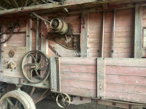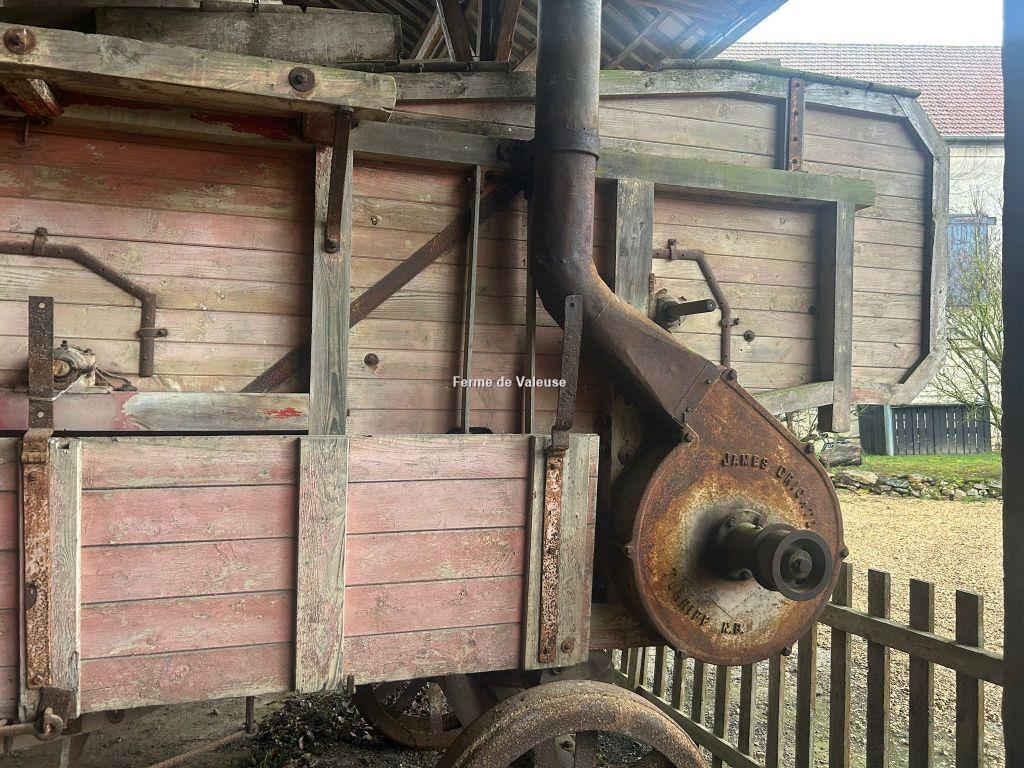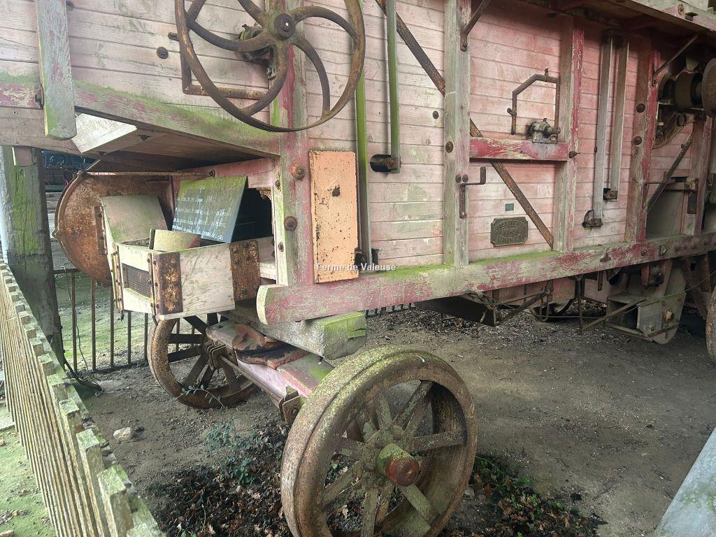 À vendre, Moissonneuse-batteuse James Crichton 1930 , exemplaire de collection en état d’origine. Cette machine historique illustre les techniques agricoles de l’époque, utilisée pour moissonner, battre et séparer le grain dans les exploitations céréalières.