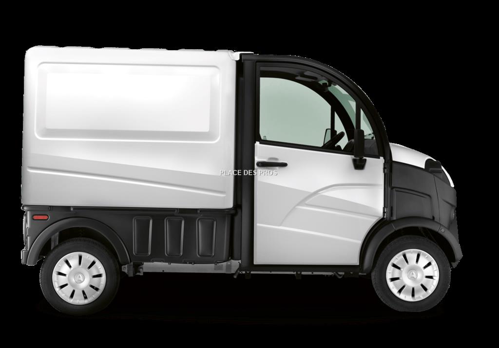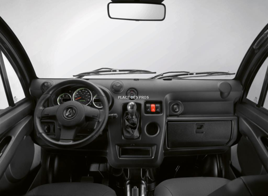 Moteur Diesel Disposition à l'avant transversal Cylindrée (cm3) 479 cm3 Nb et disposition des cylindres 2 en ligne Alimentation et dépollution injection et chambres de turbulence Refroidissement Liquide Puissance maximale kW CEE (CV à Tr/min) 6 kW (8,15 CV à 3200 tr/min) Couple (mN à tr/min) 21 Nm à 2500 tr/min Régime maxi en charge (tr/min) 3200 tr/min Carburant Diesel Alternateur (W) 12V/ 40A Batterie 12V/ 41 Ah Puissance administrative (France) 1 CV Transmission Automatique par variateur Roues motrices Avant Pont réducteur inverseur 1 rapport av+neutre+1 rapport arrière Système de freinage Double circuit avec limiteur asservi à la charge Disques avant diamètre (mm) 220 Tambours arrière diamètre (mm) 160 Type de suspension ressort HLE et amortisseurs hydrauliques à double effet Suspension avant roues indépendantes type pseudo Mac Pherson triangulée,ressorts hélicoïdaux Suspension arrière roues indépendantes, bras tirés, ressorts hélicoïdaux Dimensions des pneumatiques 145/70R13 Carosserie ABS acrylique sur structure aluminum Direction à crémaillère, rayon de braquage (m) 4 Nombre d