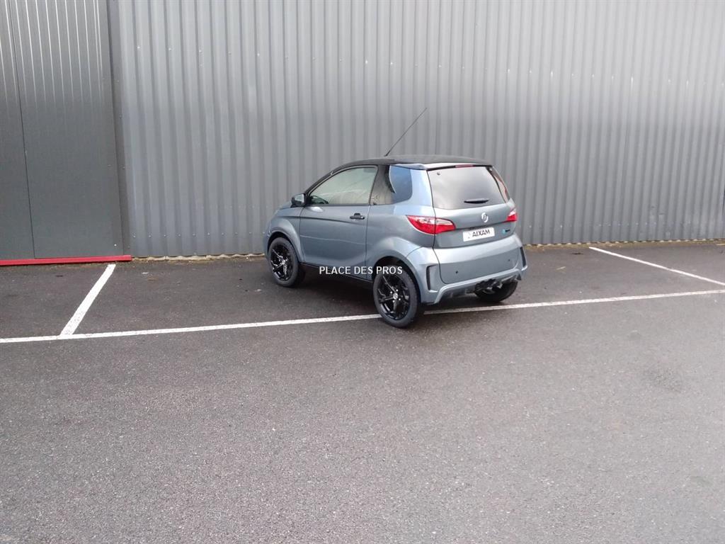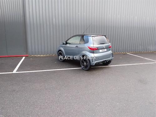 gris titane OPTRS9060 : Teinte Métalisée ou Nacrée (Bleu Saphir, Gris Titane, Rouge Nacré, Noir Métal / toit noir brillant) OPTS9001 : Cloison de séparation habitacle/coffre OPTRS9083 : AIXAM CONNECT 7 pouces : Tablette tactile écran 7 Bluetooth + USB APPLE CAR PLAY/ANDROID AUTO ASSISTANCE X24 : ASSISTANCE MOTEUR Moteur Electrique Cylindrée (cm3) - Puissance maximale kW 6 Couple (mN) 40 Carburant Electricité Batterie 5.1kW/h - lithium TRANSMISSION Transmission automatique par variateur Roues motrices avant Pont réducteur inverseur 1 rapport avant + neutre + 1 rapport arrière FREINAGE Système de freinage double circuit avec limiteur et rattrapage automatique d'usure des garniture Disques avant diamètre (mm) 220 Tambours arrière diamètre (mm) 160 SUSPENSIONS Type de suspension ressort HLE et amortisseurs hydrauliques à double effet Suspension avant roues indépendantes type pseudo Mac Pherson triangulée,ressorts hélicoïdaux Suspension arrière roues indépendantes, bras tirés, ressorts hélicoïdaux PNEUMATIQUES Dimensions des pneumatiques 155/60R15 CH