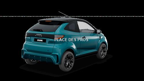 MOTEUR Moteur Electrique Cylindrée (cm3) - Puissance maximale kW 6 Couple (mN) 40 Carburant Electricité Batterie 7,44kW/h - lithium TRANSMISSION Transmission automatique par variateur Roues motrices avant Pont réducteur inverseur 1 rapport avant + neutre + 1 rapport arrière FREINAGE Système de freinage double circuit avec limiteur et rattrapage automatique d'usure des garniture Disques avant diamètre (mm) 220 Tambours arrière diamètre (mm) 160 SUSPENSIONS Type de suspension ressort HLE et amortisseurs hydrauliques à double effet Suspension avant roues indépendantes type pseudo Mac Pherson triangulée,ressorts hélicoïdaux Suspension arrière roues indépendantes, bras tirés, ressorts hélicoïdaux PNEUMATIQUES Dimensions des pneumatiques 155/65R14 CHÂSSIS ET VOLUMES Carosserie ABS acrylique sur structure aluminum Direction à crémaillère, rayon de braquage (m) 4 Nombre de places 2 Volume du coffre (L)* *Sans tablette avec cloison 567 DIMENSIONS HORS TOUT (MM) Longueur 3000 Largeur 1500 Empattement 2000 Voie avant 1345 Voie arrière 13